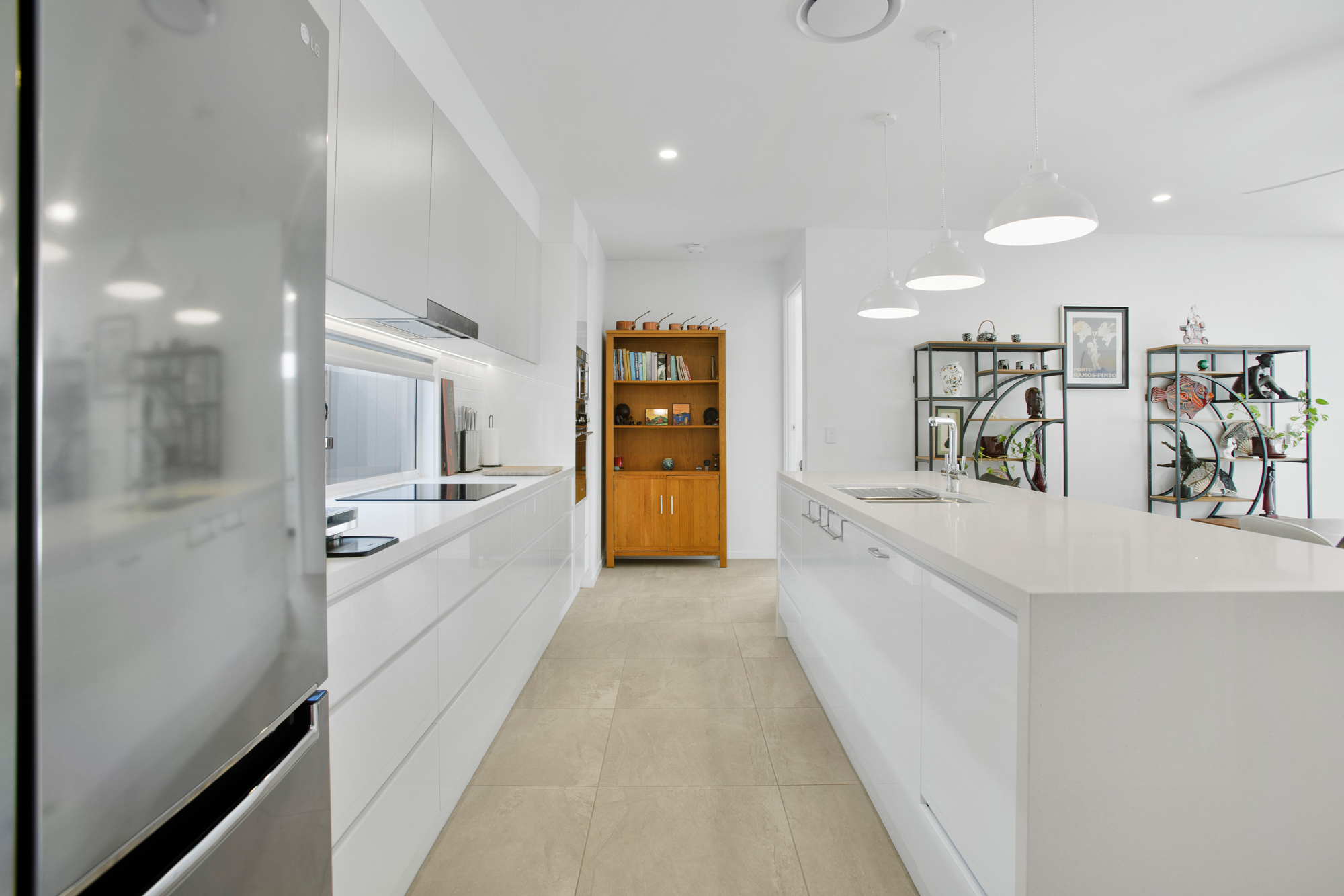 – Designer kitchen featuring a well-appointed butler’s pantry, quality Smeg appliances including a full-size dishwasher and induction cooktop, complemented by excellent storage and refined finishes.