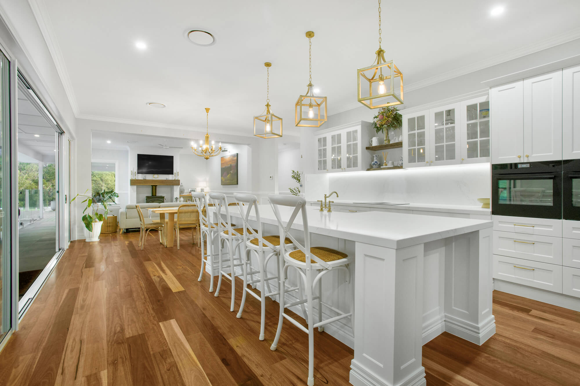 – Every window captures expansive pastoral views, flooding the home with natural light and a serene sense of space, while architectural joinery, decorative wall panelling, and feature lighting throughout enhance its luxurious ambience.