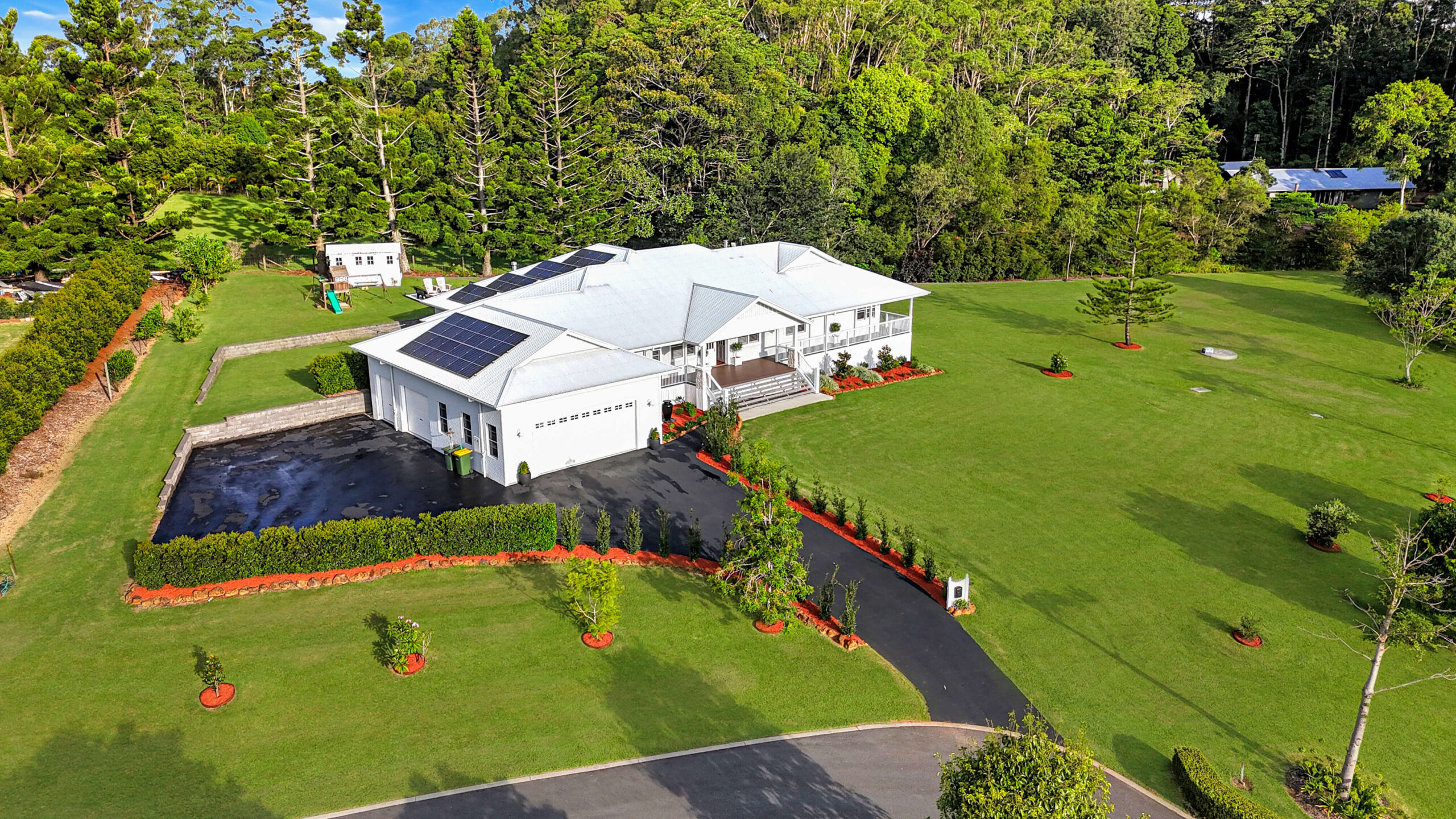 – Ducted air-conditioning and ceiling fans throughout, 10KW solar system with integrated battery storage, oversized three-car garage with internal access and workshop potential, combine comfort, convenience, and sustainability.