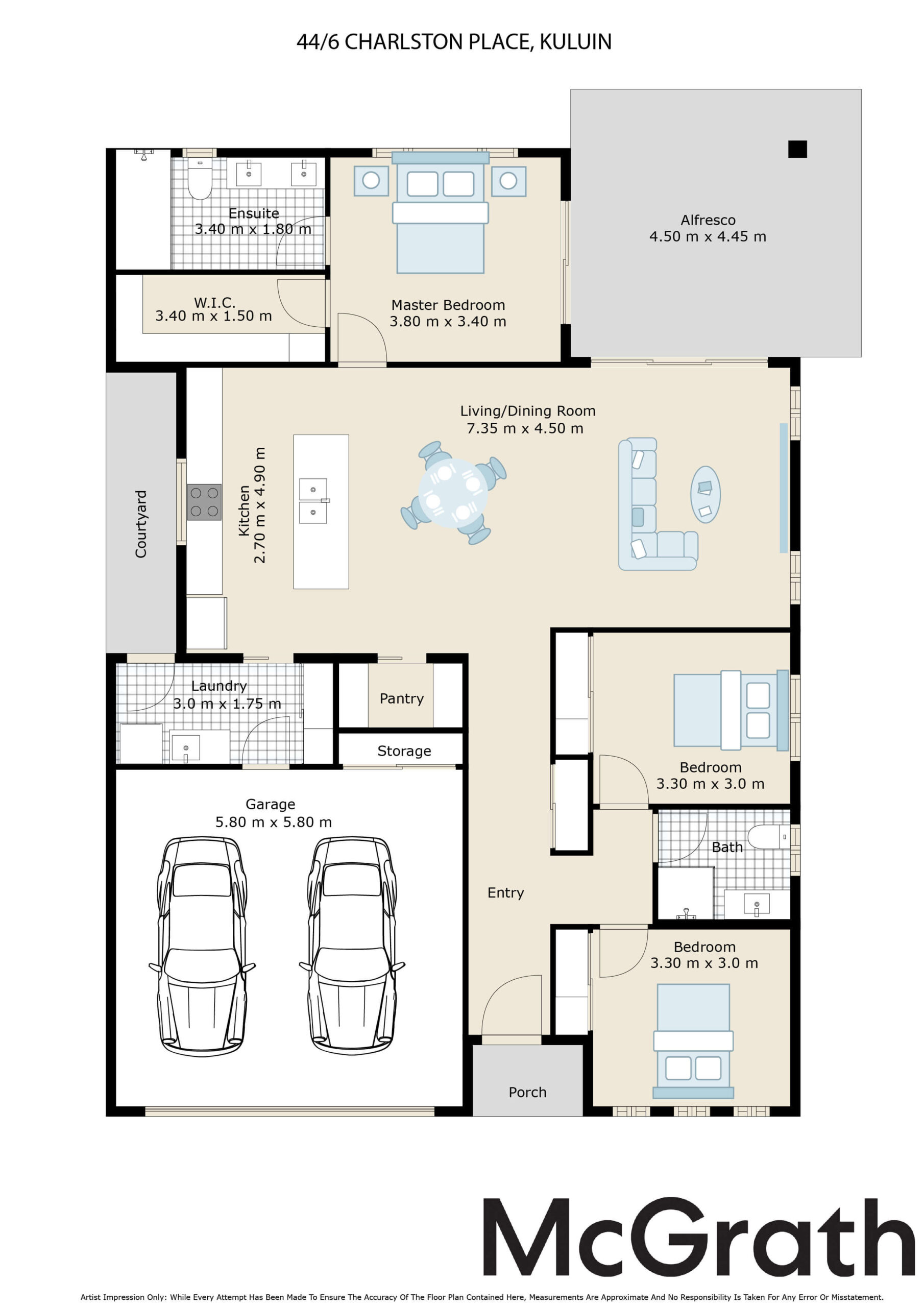 – Spacious master suite with walk in robe, ensuite, and direct access to the outdoor alfresco.